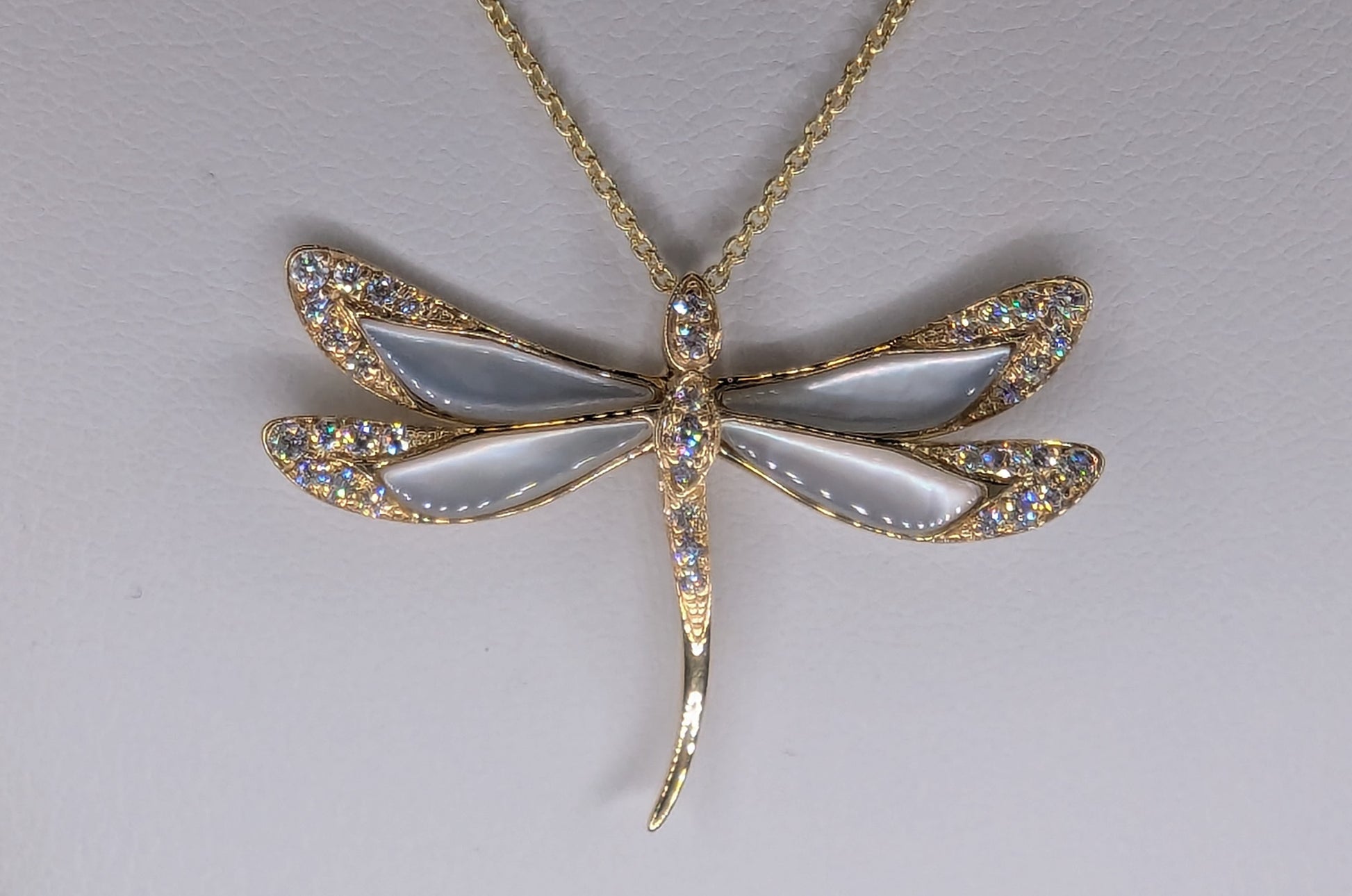 14 Karat Mother of Pearl Dragonfly Pendent mop=1.46 twDia=0.30 tw