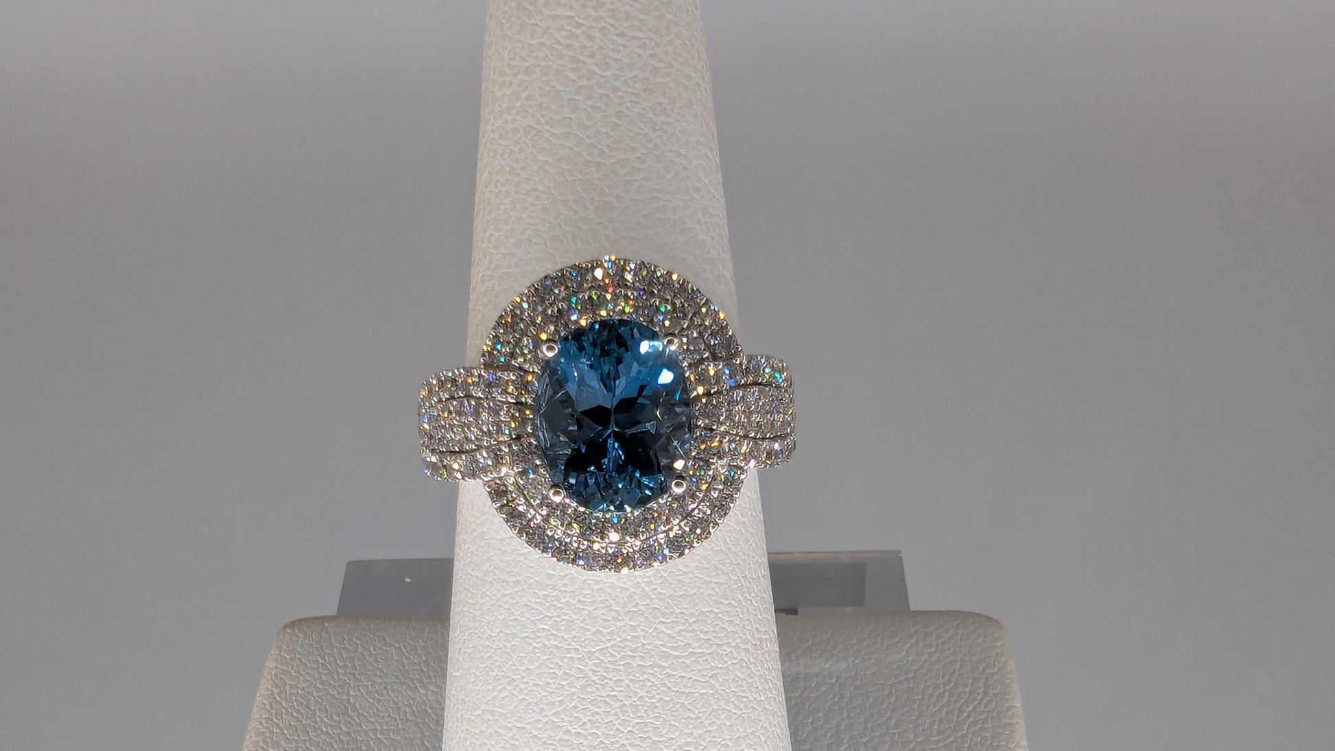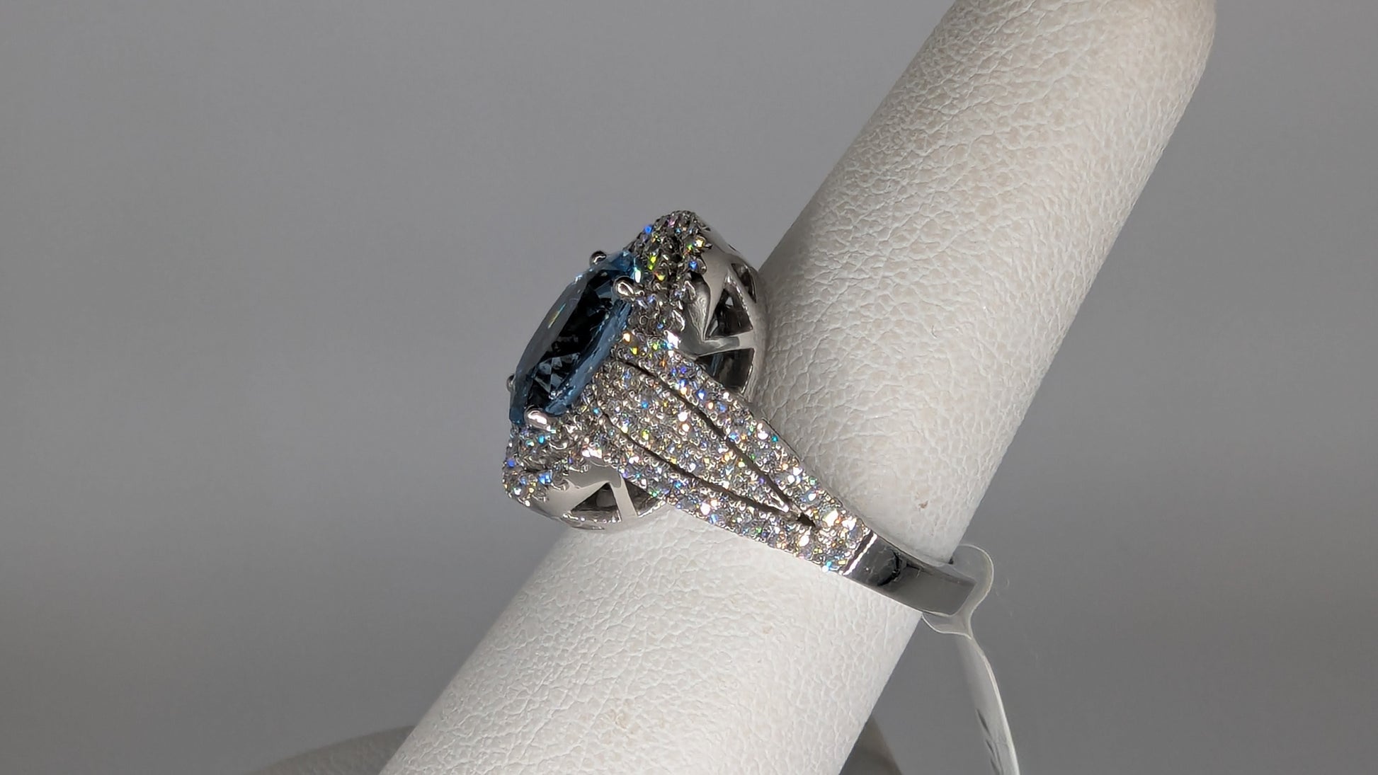 Ladies White 18 Karat Fashion Ring Aqua=2.76 Dia=1.13 tw